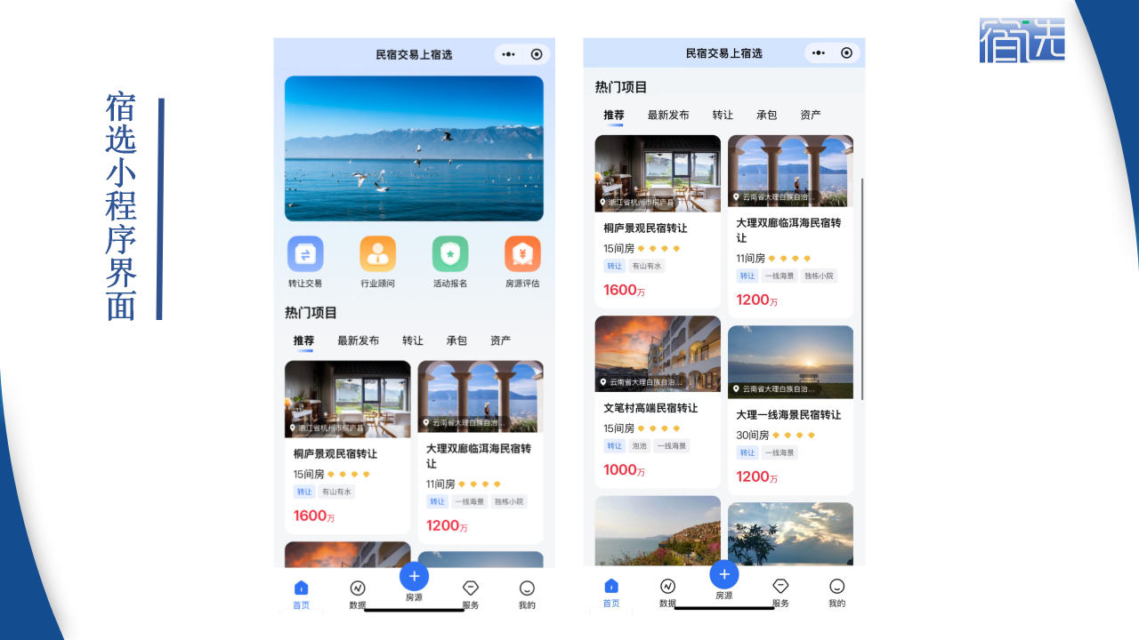 基于這樣的市場大背景之下,民宿界的“貝殼”——宿選交易平臺應(yīng)運而生,小程序計劃在4月下旬正式推向市場。
