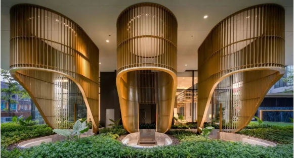 兩個(gè)零售綜合體的建筑靈感來(lái)源于與湄南河相關(guān)的文化價(jià)值觀和信仰,暹羅天地?(ICONSIAM) 大廈是一個(gè)高度現(xiàn)代化的建筑,模仿了蕉葉燈籠折疊的方式,將傳統(tǒng)的泰國(guó)設(shè)計(jì)變成現(xiàn)代化的意思。