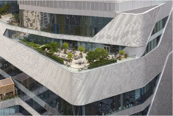 ICONLUXE復(fù)合體類似三面蕉葉燈籠形的玻璃,外觀沿河300米延伸。一個(gè)特殊的玻璃被用來(lái)創(chuàng)建復(fù)雜的垂直褶皺設(shè)置的一個(gè)新先例。這款設(shè)計(jì)采用傳統(tǒng)的泰式連衣裙,搭配褶皺披肩,折疊著這個(gè)復(fù)雜的最有價(jià)值的部分。